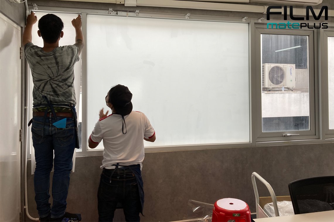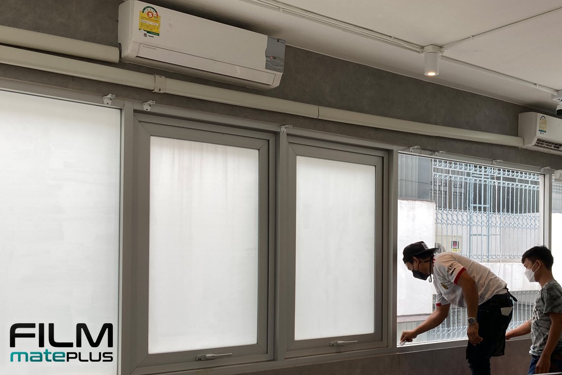 ลูกค้าต้องการ ฟิล์มกรองแสง ที่ค่อนข้างมืดหน่อย กันร้อนได้ดี แสงเข้าพอสมควร และ ฟิล์มฝ้าหรือฟิล์มสีขาวขุ่นเพื่อความเหมาะสมกับสถานที่